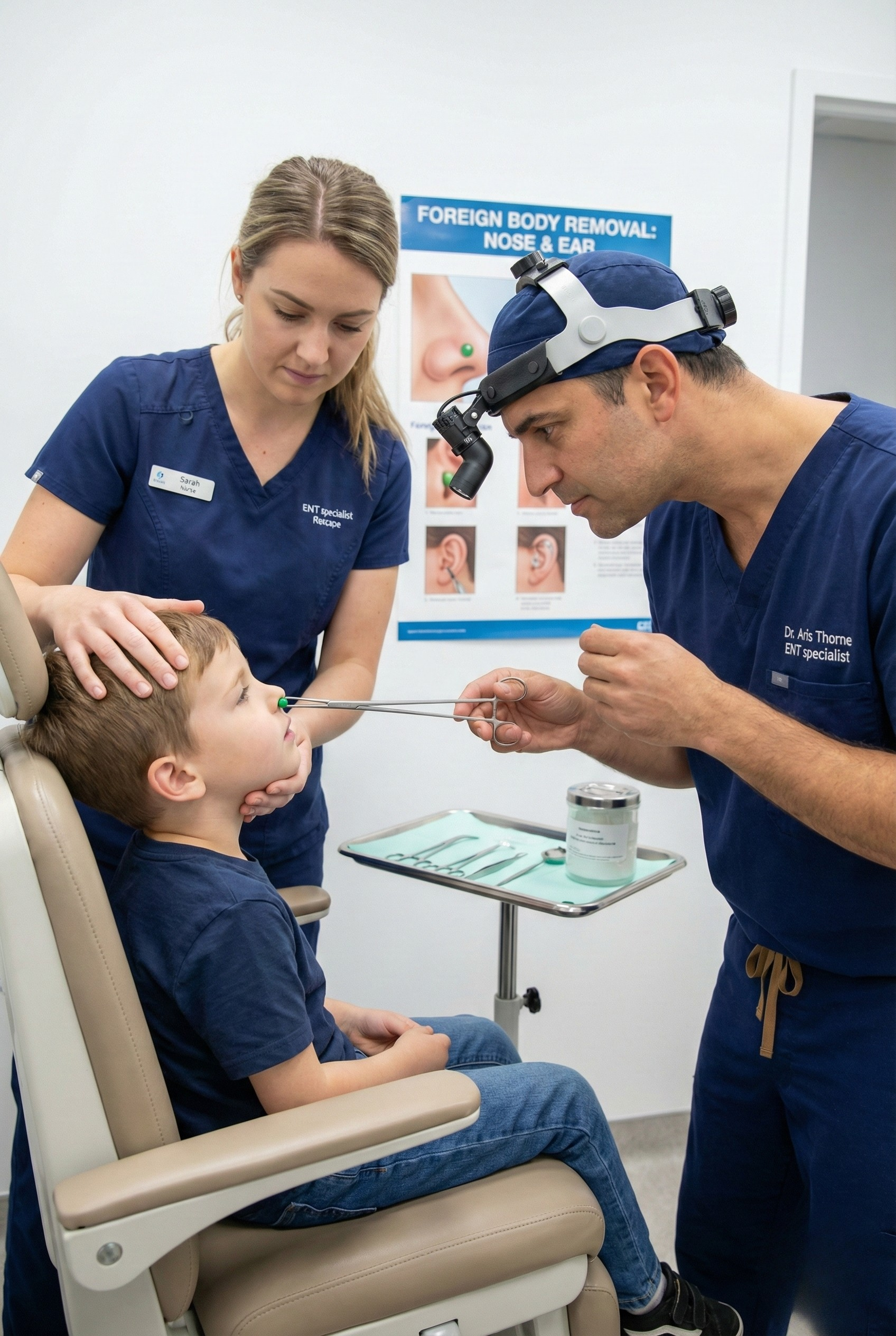 This procedure is recommended when a patient experiences nasal blockage, ear pain, foul-smelling discharge, bleeding, hearing difficulty, or visible foreign material in the nose or ear. Insects in the ear and sharp or impacted objects require immediate medical attention. Before removal, our ENT specialists perform a careful examination to identify the type, size, and location of the foreign body to plan the safest approach.