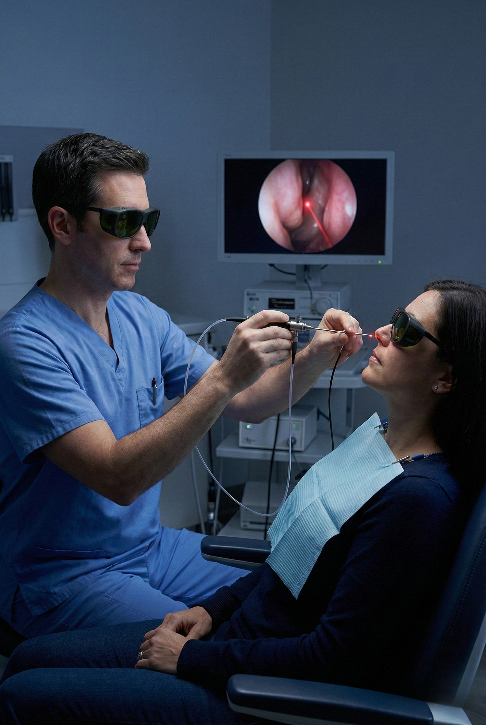 This procedure is recommended for patients with nasopharyngeal hypertrophy, benign lesions, chronic inflammation, or recurrent symptoms unresponsive to medical therapy. Laser application may also be advised to improve airway patency or address Eustachian tube–related issues. A detailed endoscopic evaluation is performed before planning treatment.